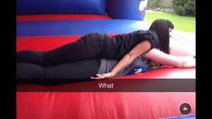 | Jenny thought lying on me was a suitable way to Christen the bouncy castle. |