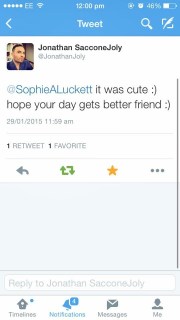 Which Jonathan Sacconejoly of the ‘Sacconejolys’ retweeted almost instantly. I must have just caught it at the moment when he’d refreshed his page or something because it was within a minute that he retweeted. Instantly I was flooded with notifications of other people retweeting and favouriting the tweet (at present over 160 people have favourited it) and I was over the moon.