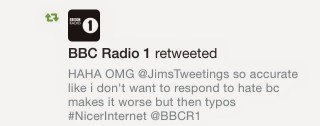 Radio 1 retweet and (another, tehe) Jim Chapman favourite makes for a very happy Sophie.