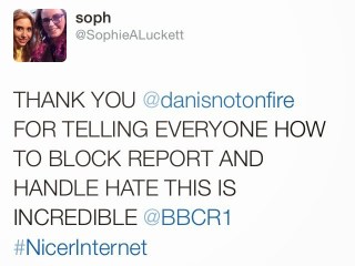The subject was then raised about reporting people on social media and how sometimes it just doesn’t cross people minds that you can actually stop people from messaging you in this way. I thought I’d share one of my experiences for the sake of anyone who was going through the #NicerInternet tag.