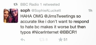 Jim Chapman (under the same name on YouTube) made a very valid point about not wanting to to respond to hate but wanting to correct their spelling when they use the wrong ‘your’, for example. I found this hilarious (as someone who has been described as a Grammar Nazi for literally years) and then BBC Radio freaking 1 only went and retweeted it to 2 million freaking followers! I’m still not over this, it’s going to make me infinitely happy until at least next week.