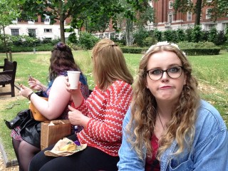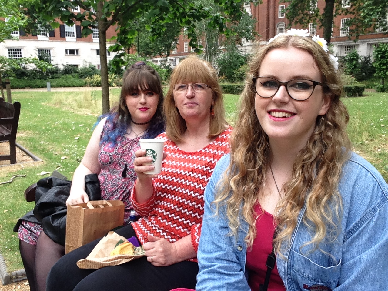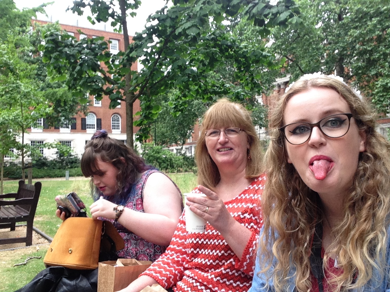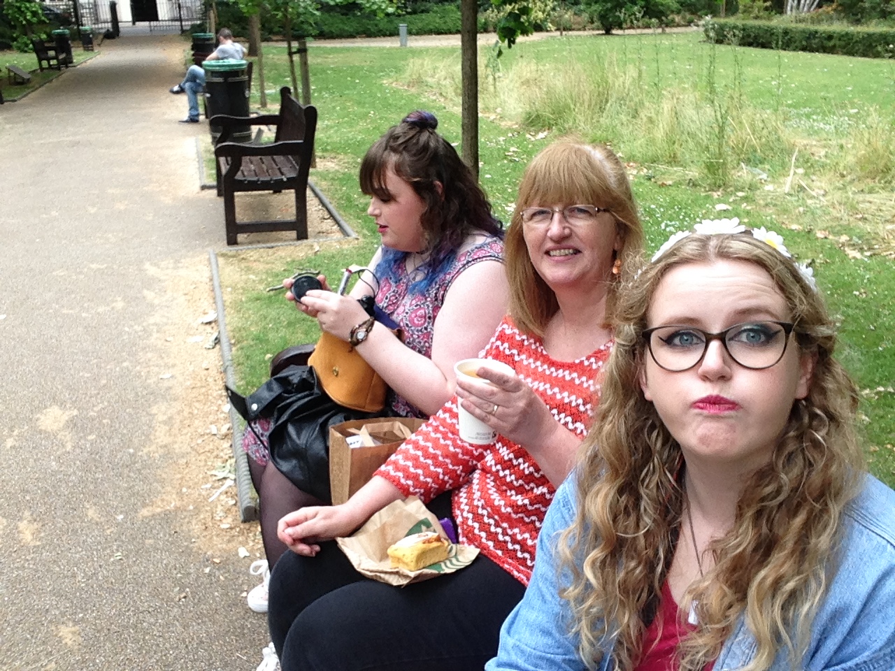 We then sat on a very, very busy train for an hour and a half to get to London, walking to Bloomsbury Theatre to get our bearings. We then went for a wonder a found a park opposite a Pret A Manger and Starbucks and bought a little picnic lunch and ate while laughing at fat pigeons and using my selfie stick.