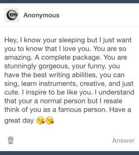 Reading these again I got all smiley – I’ll be honest, I like having lots of followers on tumblr because it does make me feel semi famous and I like having this group of people to connect with.