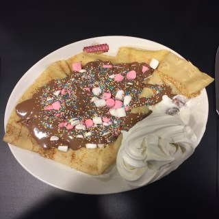 After dinner we looked at the dessert menu of the restaurant at the hotel they’re staying in and it was fancy pants and mildly disappointing so I mentioned going to Sprinkles Galeto, across town. So we walked ten minutes across town and got waffles and pancakes with toppings and ice cream and Laura (my sister) and I failed to finish but mum and Lucas finished and started eating ours.