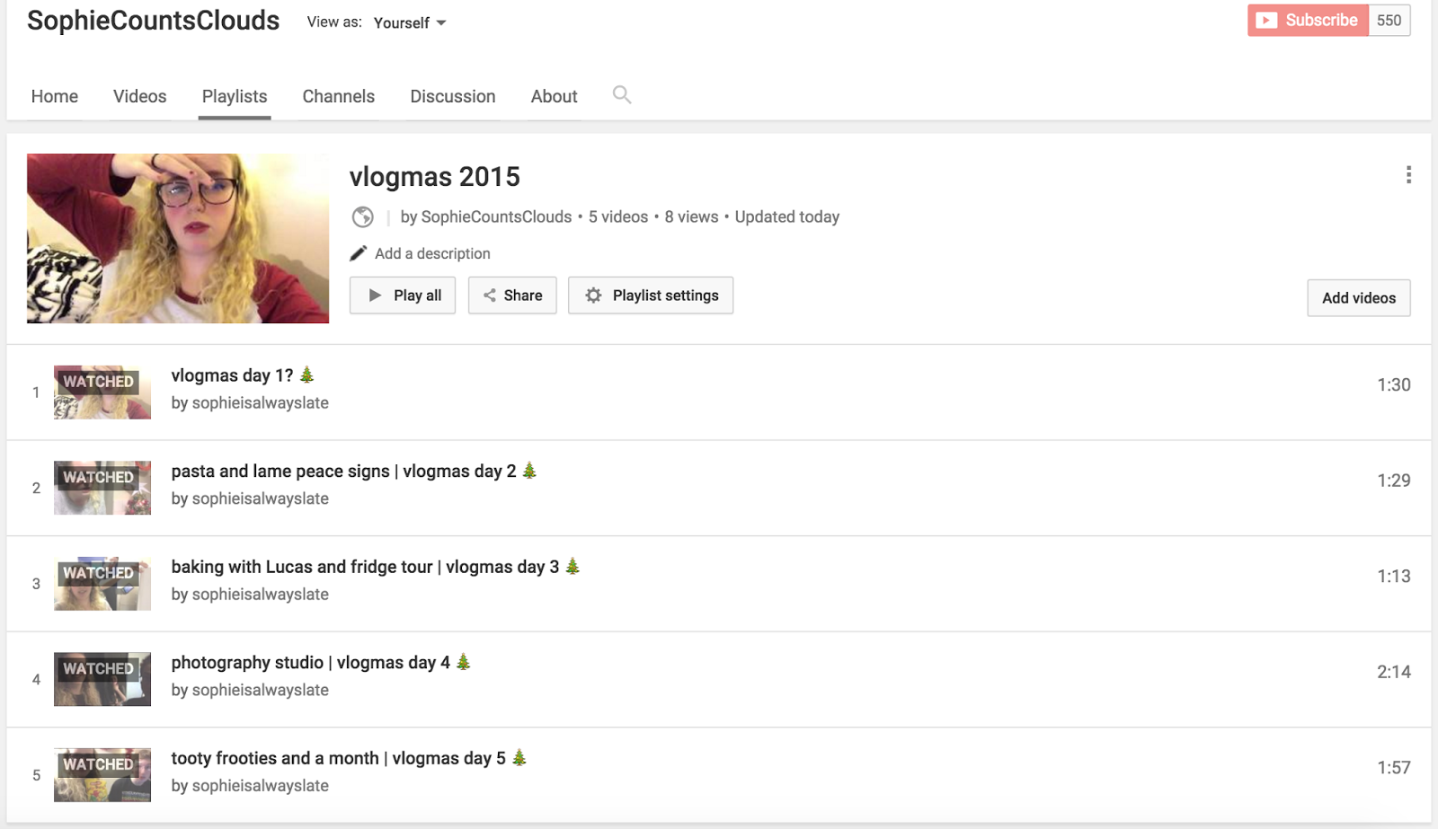 So if you want to watch and follow my Vlogmas videos, I’ve made a playlist on my main channel and you can find my second channel from there – Vlogmas 2015