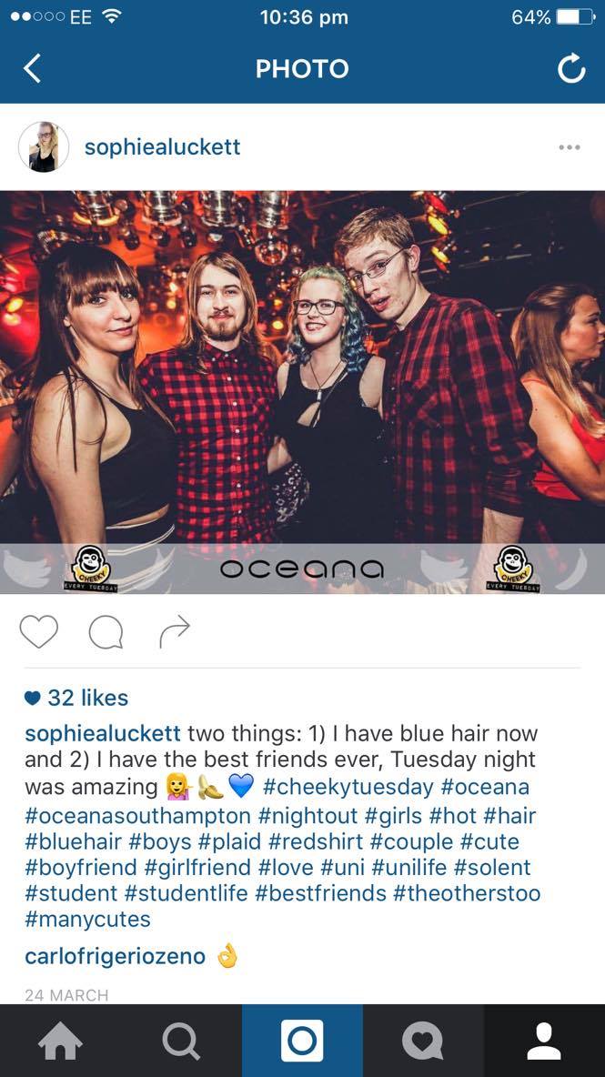 And here we have my second ever night out in my seven months so far at uni! It was actually a really good night and I really enjoyed it – so much so I’ve already got a couple more nights out planned! Also – my hair is now blue. More to follow.