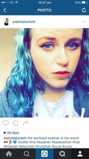 Wonky eyeliner and blue hair – perfect excuse for a selfie! Right?