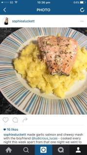 Definitely one of my favourite dinners this month – garlic and herb salmon with cheesy mash! I love salmon, but it’s quite expensive! However we figured out the budget to treat ourselves and it was really good, definitely one we’re hoping to do again soon!