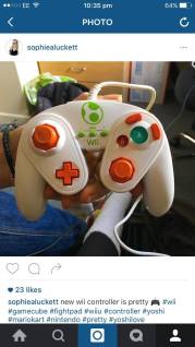 I’ve never been a massive gamer – MarioKart is the extent of my gaming capabilities – but I really do love MarioKart and this Yoshi Fight Pad (Game Cube controller… thing) is gorgeous and I love it!
