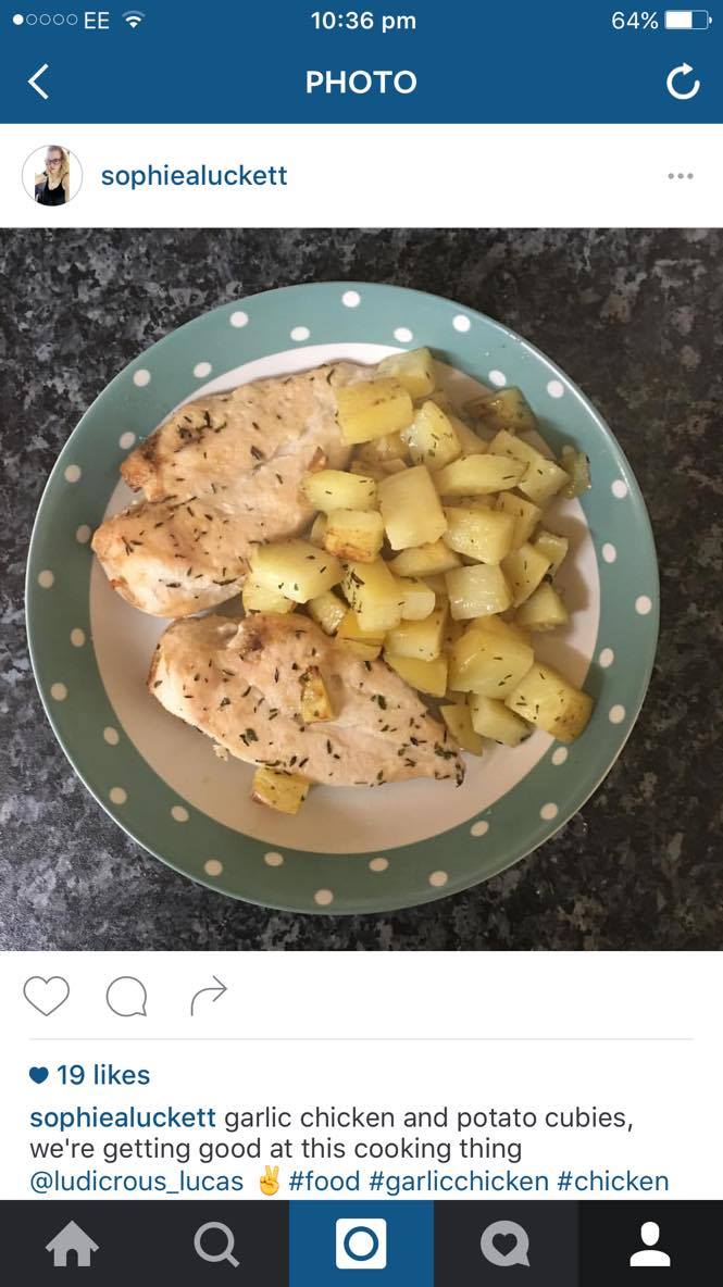 Lucas and I got really into cooking last month and I started Instagramming a lot of what I ate (as you’ll see!) but this garlic chicken and herbed potato cubes is one of our favourites!
