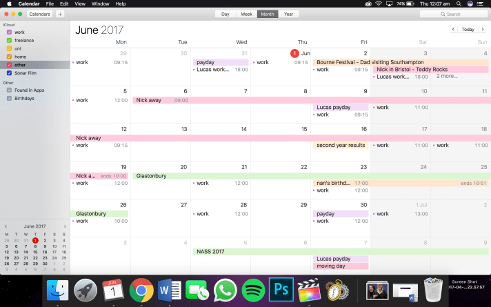As I’m lacking in the florescent stationery highlighters, I need a new way to organise! Not really – I love my bullet journal and it’s good for organising the finer details of things but for an overview of what my month looks like in a more general way then I like putting everything into Apple Calendars. I like being able to have different categories and I can sync with my other Apple-product-using friends and I like having it on my computer where everything else is in my journal. I like the combination of the two.