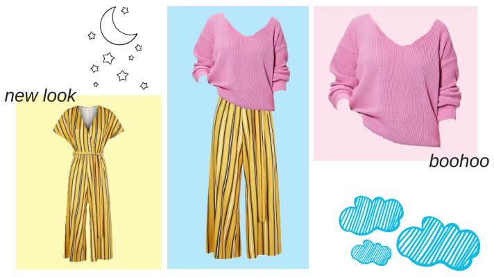I was intending to take a picture of me in this outfit but I got too nervous about it so I made this image instead… [ new look jumpsuit ] [ boohoo jumper ]