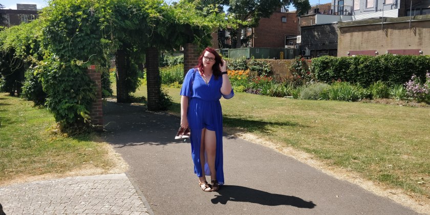 I wore this blue playsuit from New Look with what I’m referring to as a cape (that I adored). It was comfy, I felt badass and it was flattering, keeping the bits of my body I’m a little more insecure about more covered.