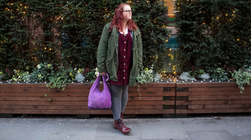 However I didn’t think to not be holding the bulging purple bag of my new NASA sweater and the hat and scarf it was too warm for, I didn’t think to shrug off my coat and actually show off my outfit, nor did I think to get any close ups of nice details. But it’s all lessons to learn for the future – can’t rush outfit photos!