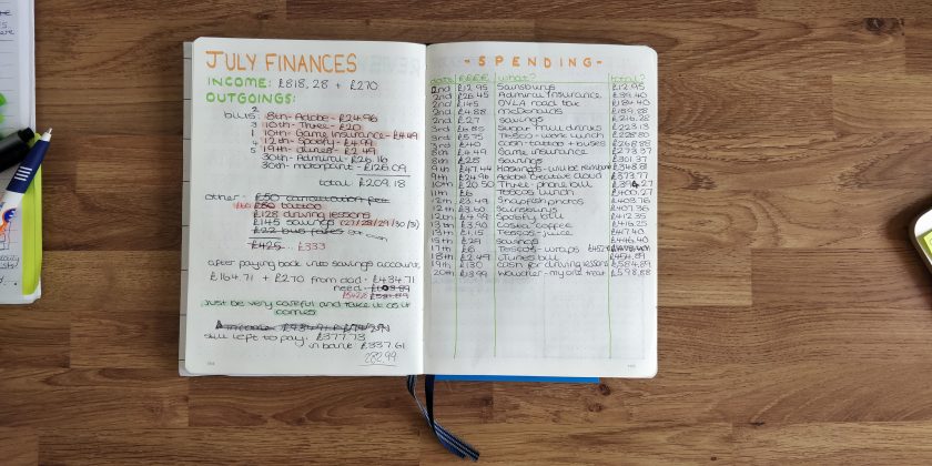 Another thing I find helps with this is having a post it note or section in your journal towards a ‘big spend’ – if there’s something that you want or need to spend slightly more money on. I have a big spend post it note that I transfer to each monthly finance spread with each month and what I would like to be my ‘big spend’ if I can afford it. It’s meant that because I could plan it out, I bought myself a Nintendo Switch in May, a new car in June and I’m hoping to be able to get prescription sunglasses and pay the deposit on a rented property in August. It really is achievable if you set your mind to it!