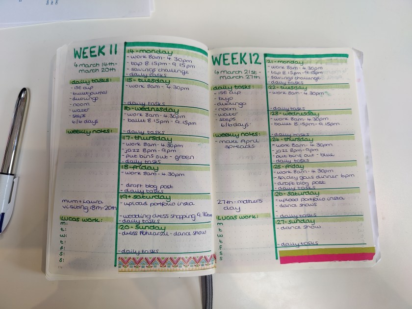 As I finished my masters in a pandemic and started my first full time job, I was still using my bullet journal but not to the same degree – I didn’t feel I needed it as much, it was a notebook I’d plan some tasks in once a week then barely look at.