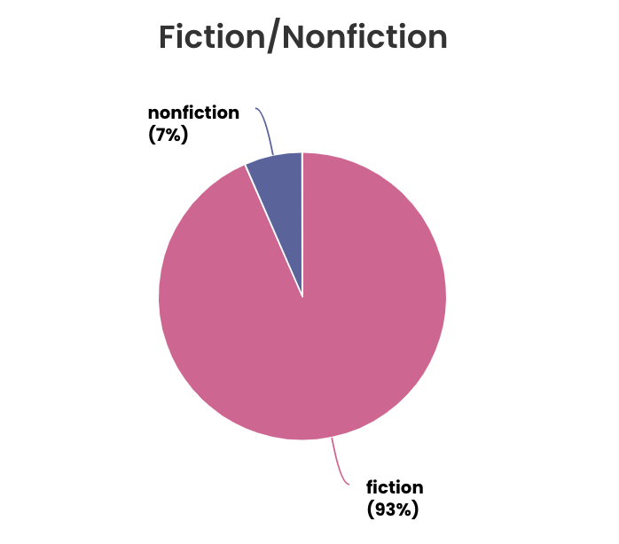 In Q1, I had only read 3+ star books and now I’ve used the full spectrum of ratings. I’m too stubborn and reluctantly optimistic to DNF books (unless I’m really bored) so I have finished every book I’ve started this year, but it’s nice to see that the data definitely skews towards me enjoying more books than I didn’t!